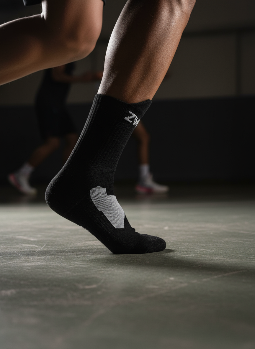 Disse premium basketball sokker kombinerer stil og funktion med deres ikoniske sort-hvide design og ZWISH branding. Fremstillet i høj kvalitet med forstærket hæl og tå for ekstra holdbarhed.